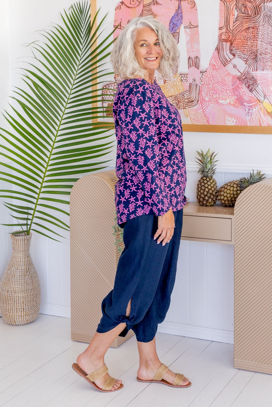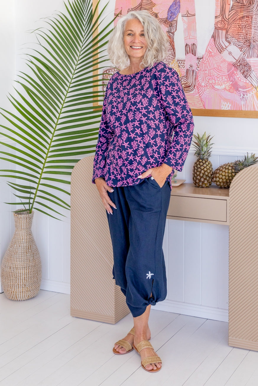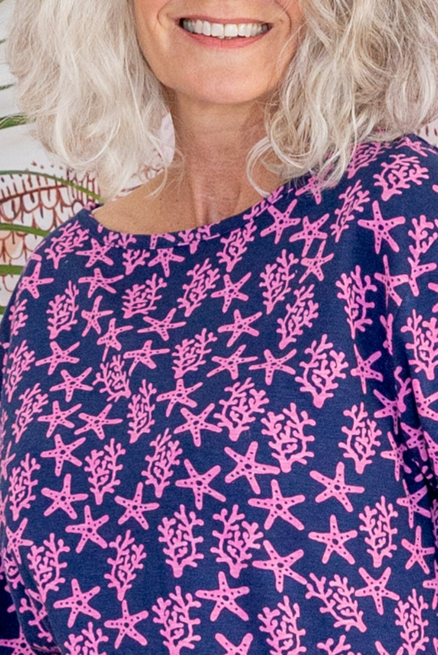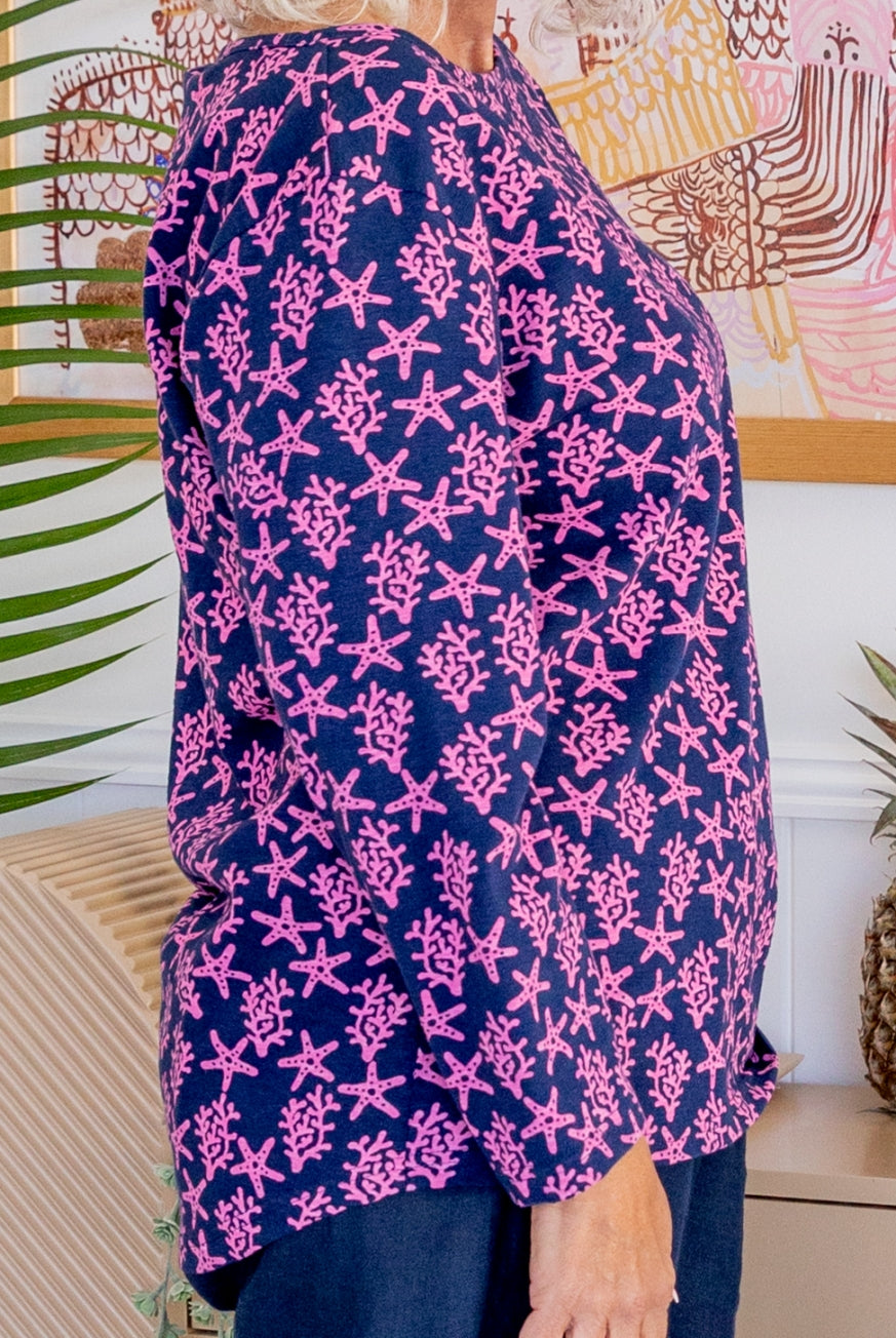 Cotton casual long sleeve tee, designed with our Atoll coral and starfish print. Get comfortable and stay cool or warm through whatever life throws at you, in clothing that lets your skin breathe. Perfect fabric weight for the unpredictable weather in fall, giving you a little warmth without suffocating your skin. By wearing pure cotton you can feel confident and stylish, all year round!.