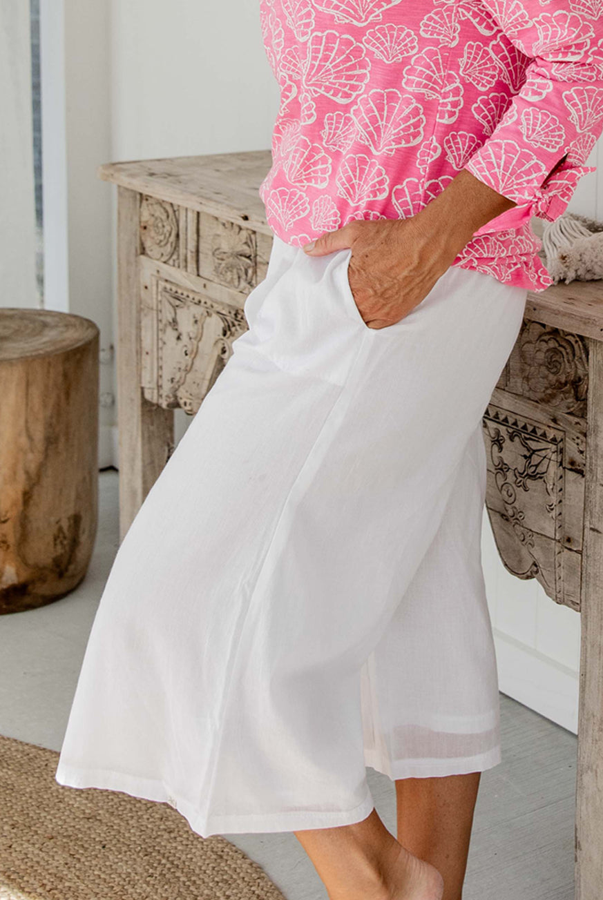 What do you wear for those vacation dinners? It's still warm after dark, so you don't need to be putting those polyester pants on your body at any time in the tropics. I have designed these lightweight soft cotton Cocktail pants. The fabric is our usual sarong voille, its very lightweight and sheer, so we have made them double layer so that they are not see through. The waistband is a cotton lycra wide waistband like our Ruffle skirt - it holds your tummy in and flatters your figure.
