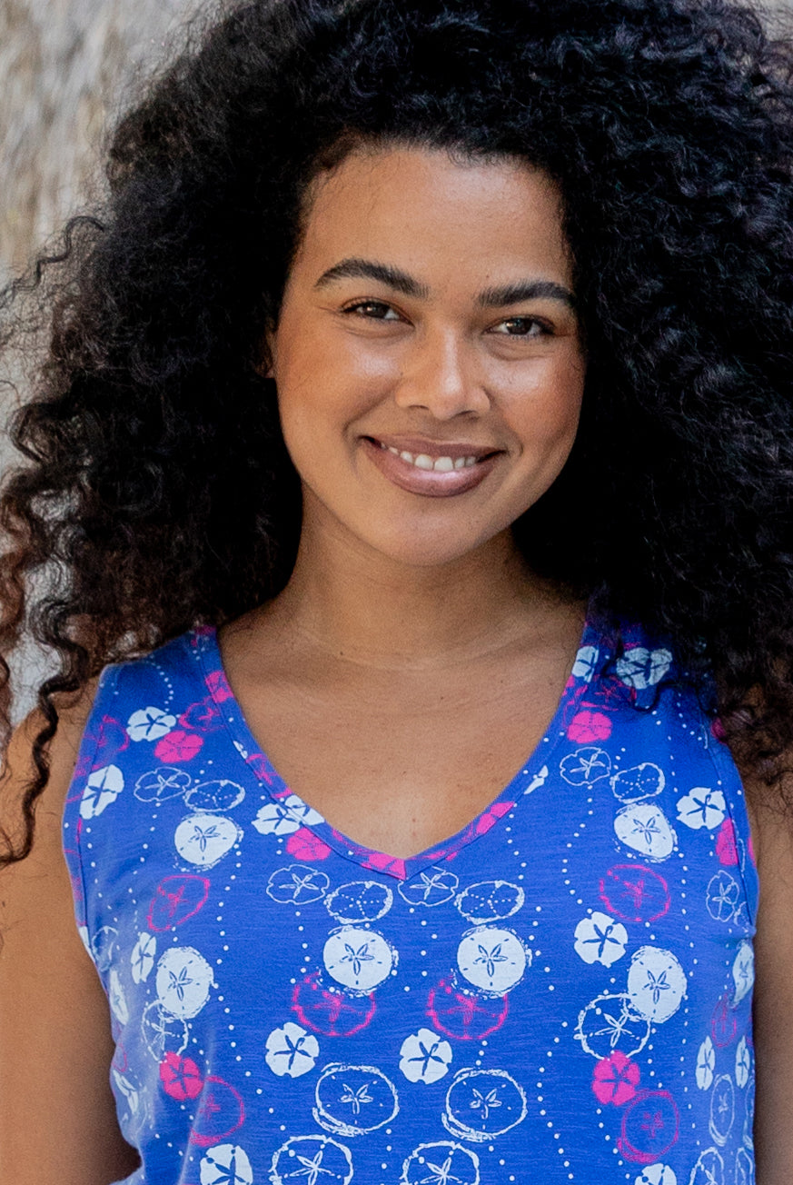 Cotton casual tank top with layered sand dollar shell print in the most adorable island colors. We have designed this cute tank top to wear with our cute Ruffle Skirt, or any of the Classic bottoms in the line. You will love the loose comfortable fit of this tank top.. so cute and comfy!.